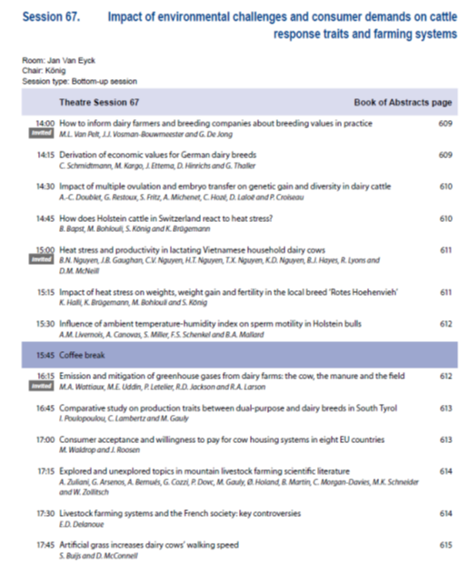 - Poster: Influence of temperature-humidity relations on FreeWalk farms during the year on milk production and quality, Marija Klopčič¹, Abele Kuipers², Lorenzo Leso³, Luka Likar¹, ¹University of Ljubljana, Biotechnical Faculty, Department of Animal Science, Domžale, Slovenia; ² Expertise Centre for Farm Management and Knowledge Transfer, Wageningen University & Research, the Netherlands; ³ Department of Agricultural, Food and Forestry Systems, University of Florence, Italy